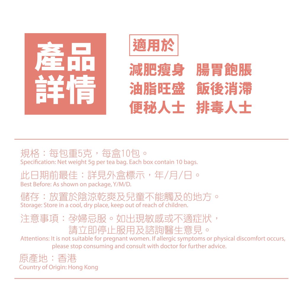 由香港註冊中醫師精心調配,嚴選多種草本植物作為原料,獨立包裝,衛生安全。健福堂消脂茶以原片材料研製,茶香隨浸泡時間越見濃郁,清香怡人,喉韻回甘。每片茶包可反復沖泡3-4次至味淡,冷熱飲用皆宜,是健美瘦身人士的首選。